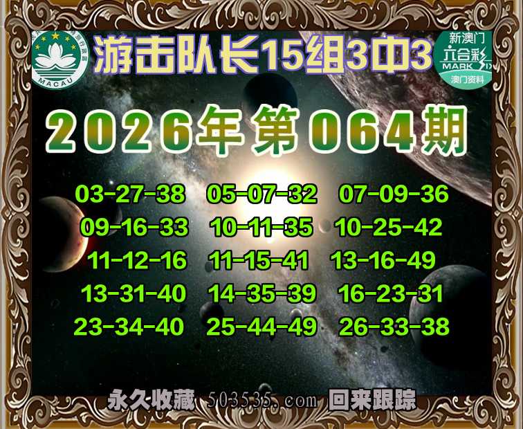 046期:《游击队长》 🥖15组3中3🥖